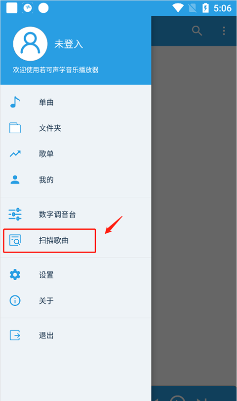 1、打开应用程序后,用户点击左上角的“三”按钮,选择“扫描歌曲”。