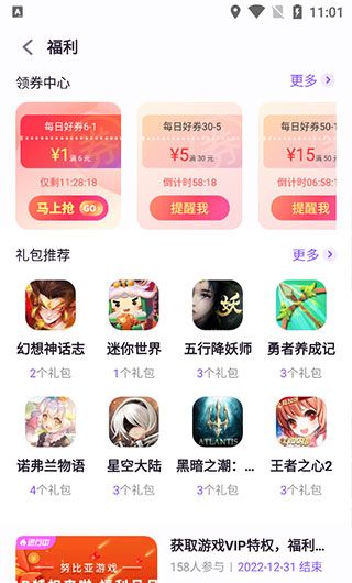 4、点击首页中的福利,即可领取超多游戏的专属礼包。