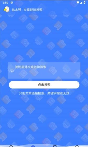 2、打开盐水鸭app,点击最下方搜索,然后在方框中粘贴刚刚复制的文章链接,最后点击搜索