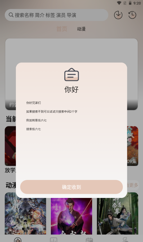 5、可通过搜索功能搜索名称,简介,标签,演员,导演的相关内容,找到自己需要的动漫