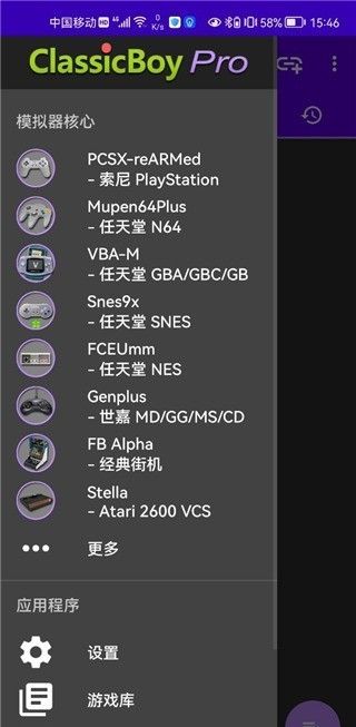 该应用程序还通过下载和安装外部插件支持任天堂snes、任天堂ds、mame 2003(0.78 romset)和世嘉32x。未来将继续添加其他游戏类型。