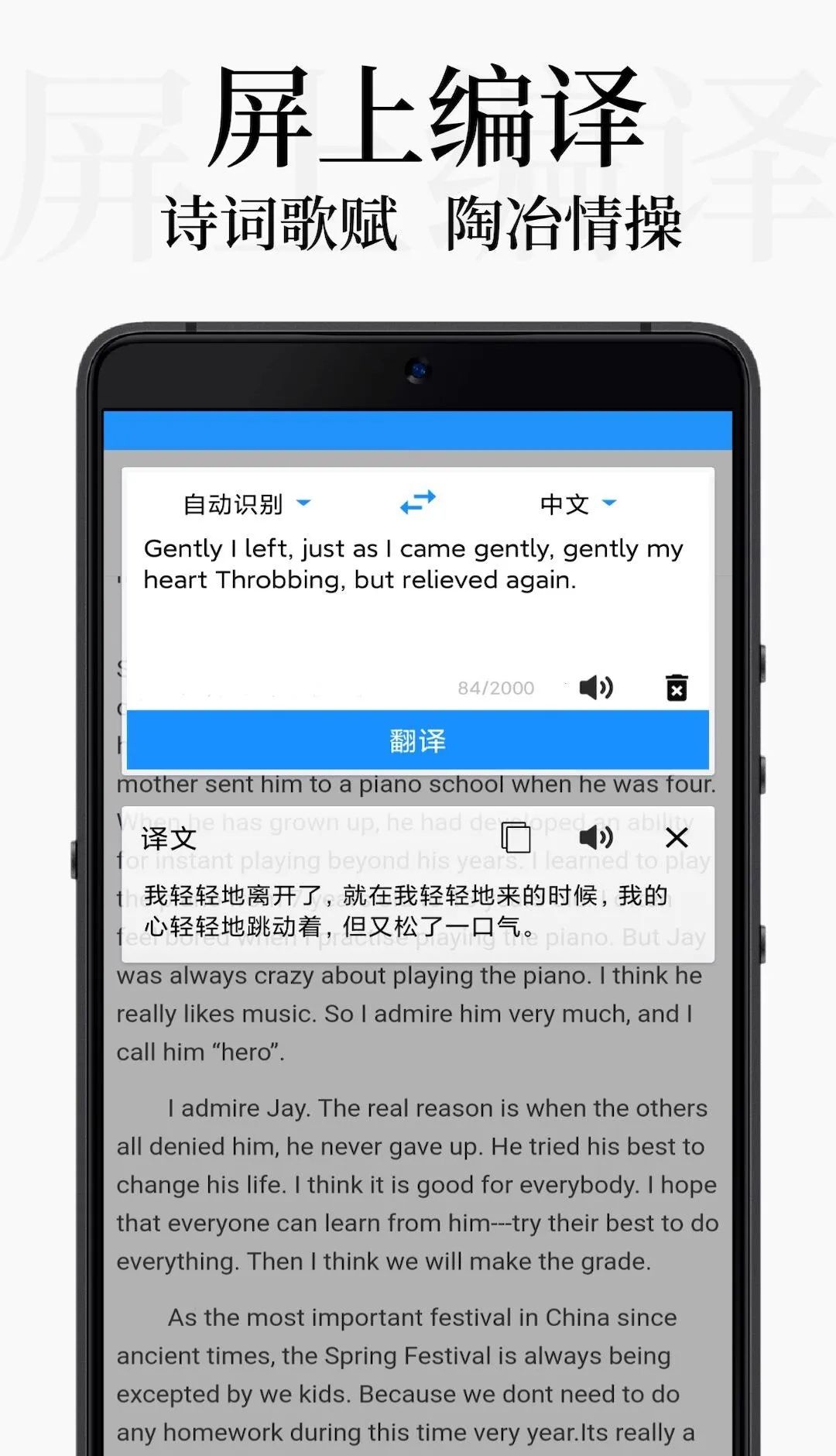 4、屏幕文字采集、场景拟合、一键翻译、屏幕截图识别、文本复制、语音播报。