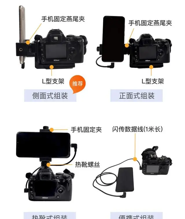 准备闪传设备(闪传匣/安卓手机)及相关配件,可选择以下任意一种方式进行组装(可以点击这里选购闪传官方配件)