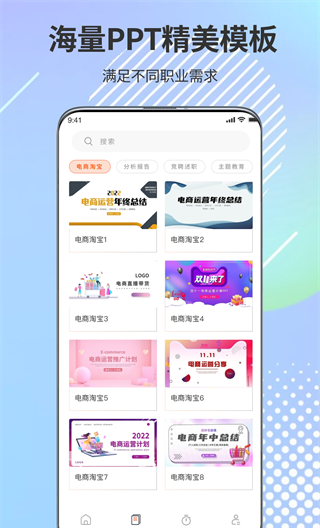 1、软件中的精彩模板任用户选,满足各行各业日常运用需求,让PPT制作更加方便。