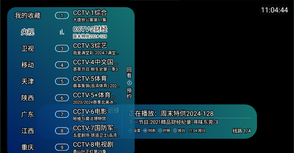 2、软件内置直播源,无需添加,在主菜单中切换即可。