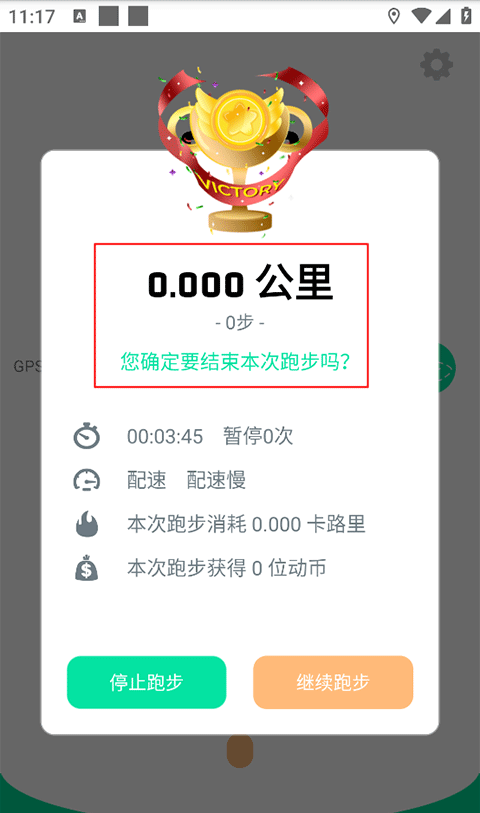 5、点击“结束”后,您可以看到您完成的总公里数,以及所花费的时间和速度。