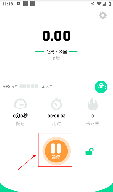 3、单击后,您可以开始运行。跑步时,还可以观察千米、步数、速度、时间和卡路里等数据。完成运行后,单击暂停按钮。