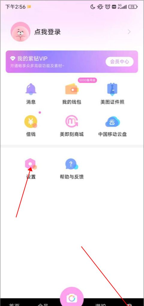 1、打开红桃相机app,点击右下角的“我”,点击“设置”。