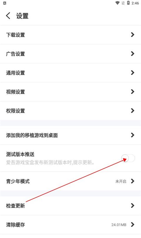2.进入设置界面后,启用“测试版推送”选项。
