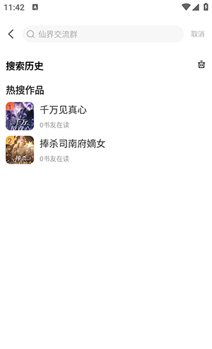 2、大家可以点击右上角的搜索,在搜索框中输入想要搜索的小说。