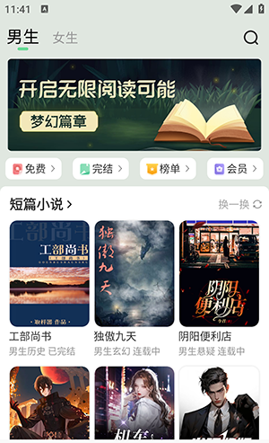4、点击想看的小说,在详情页面点击开始阅读即可。