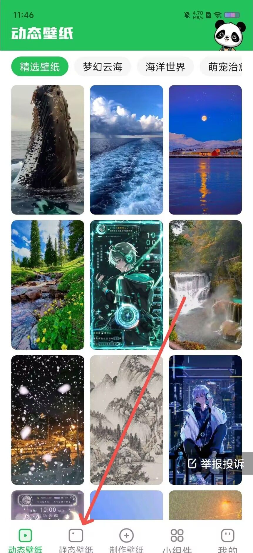 1、点击界面底部的“静态壁纸”。