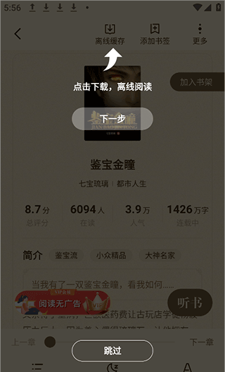 2、阅读小说时支持离线下载。