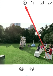 2、选择一张照片或者拍一张照片,然后点击红色箭头所指的【时钟】图标: