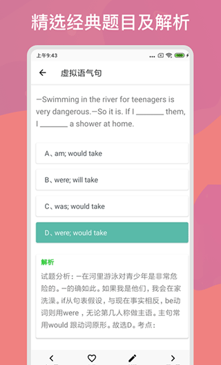 2、实用题目:软件提供实用的英语练习题目,涵盖了词汇、语法、听力、阅读等各个方面,帮助用户全面提高英语应用能力;