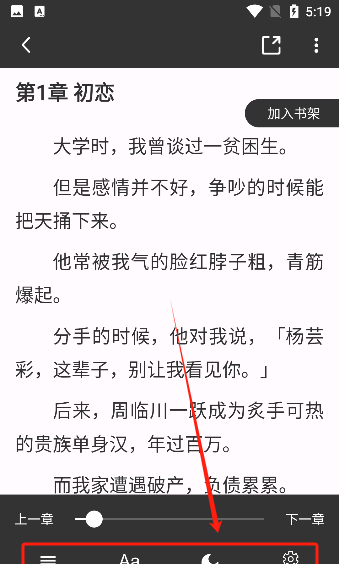 4、进入阅读页面点击还有多种参数可以调节以及对章节进行选择