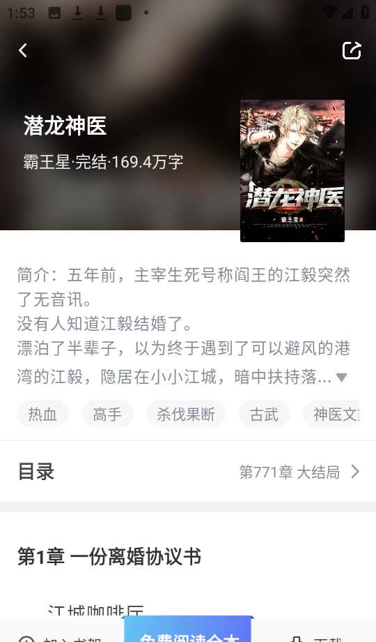 4、任意选择一本你喜欢的小说,这里以“潜龙神医”为例。
