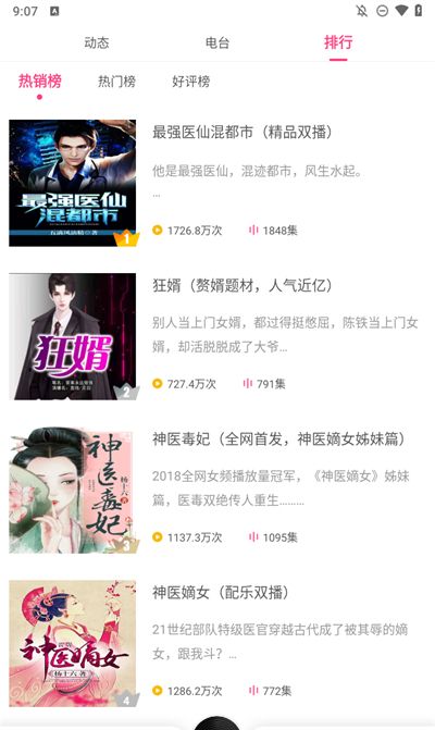 软件拥有丰富的小说资源,包括网络小说、热门连载小说、精品出版图书等等,全部免费在线收听,给你全方面的听书体验。小说种类丰富,包括都市总裁文、重生穿越文、后宫权谋文;男倾的历史军事文、恐怖悬疑文、官场权术文等应有尽有,满足用户的听书需求。每一本书都是精品,每一段音频都专业,供你随意选择。