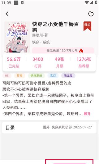 2、进入小说的详情页面,点击右下角的阅读功能即可进行阅读。