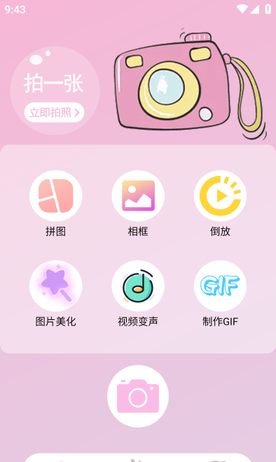 2、界面设计简洁丰富,色彩淡雅,拥有丰富的特效,可以为自己拍摄各种有趣的照片风格。用户使用时感觉非常流畅。