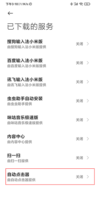 4.在界面中找到自动点击器,将其功能开启。