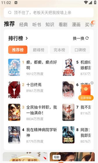 3、根据类型、作者、人气等方式对小说进行分类,这样的专区里面小说都支持大家的直接查看读者想要的作品。