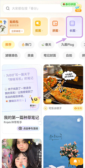 1、打开软件,点击上方的拼长图功能。