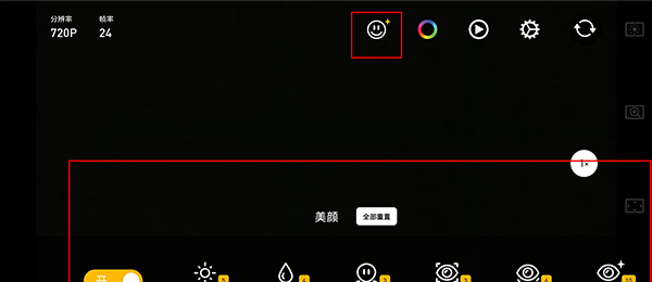 1、打开Protake随身电影机 ,先把分辨率调成720p(就可以使用美颜啦)