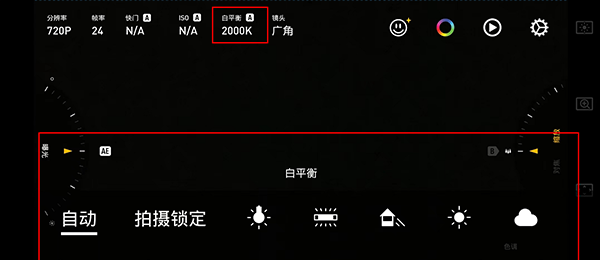 6、最关键一步:白平衡 点击:钨丝灯(有些是不可以调解的 如果可以调节的话 可以调调色温) 可以拿起手机旋转,找到合适自己的角度