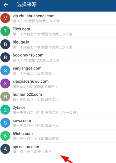 4、用户就可以在下拉的结果当中添加各种书源了。