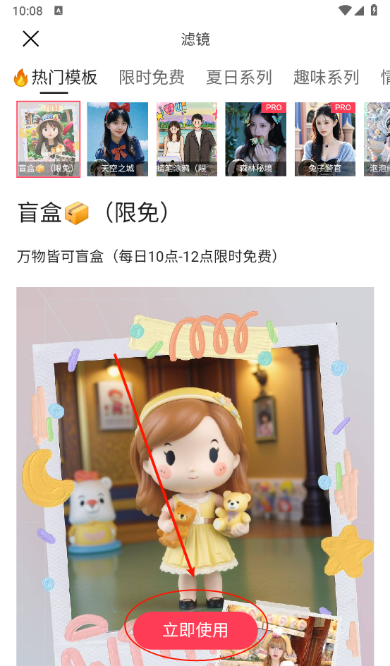 4、接着滑动选择你喜欢的模版,点击"立即使用"然后就可以上传照片进行制作同款了。