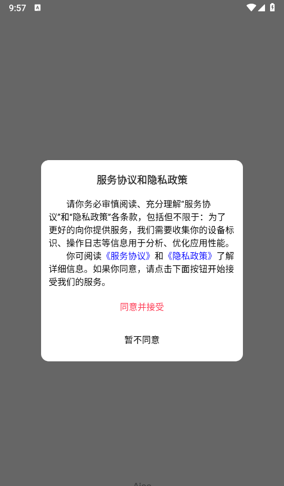 1、先在本站下载安装子言相机,查看相关用户的协议和隐私政策。