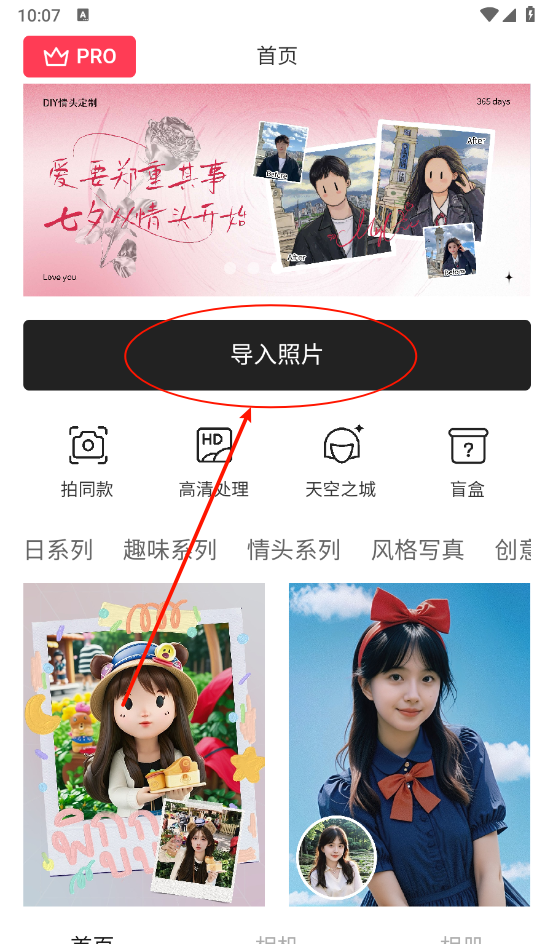 3、在"首页"点击"导入照片",海量的滤镜模版可以进行使用。