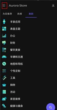 1、首先下载应用方面,点击坐上面菜单,可以按照分类进行下载。