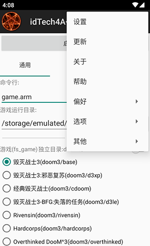 1、是专门为移动设备设计的游戏模拟器,允许用户在智能手机和平板电脑上使用idTech4游戏引擎运行经典游戏。