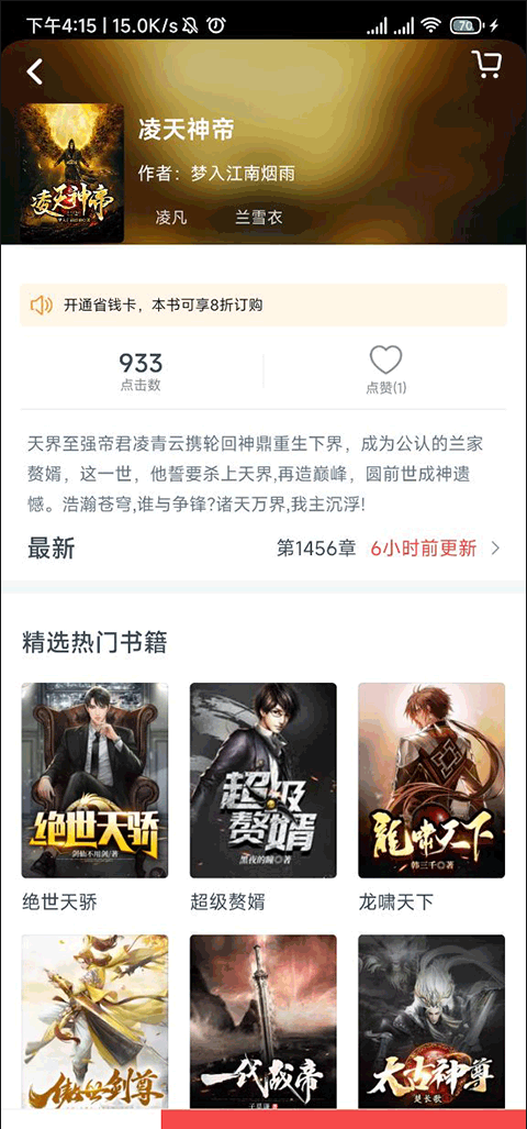 1、首先选择一本我们喜欢的小说,并进人书籍界面。