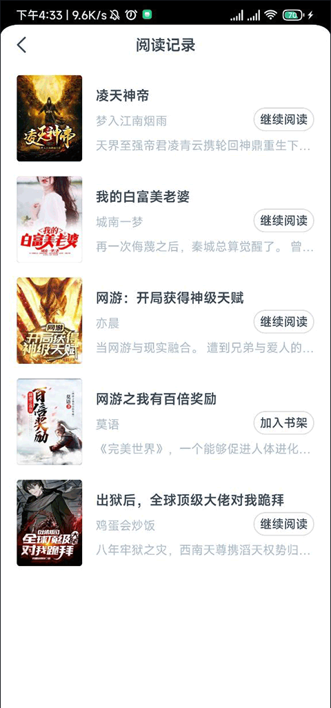 3、在这里我们可以看到我们最近读过的小说。