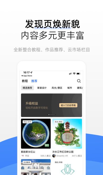 全景室内设计、新房装修、旧房改造,景观园艺,更有国内外各网红景点最美全景展示。繁华的城市、静谧的村落,热闹的民俗节日、人物纪实,看不到的景观时刻,中学高校、展馆展览、全景原画、汽车内饰等,全景创作者们全都用全景的方式记录下来,给你重新打开这个世界的大门。