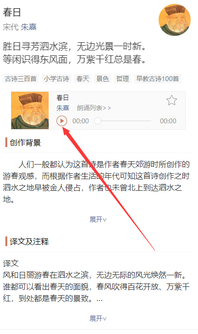 3、选择古诗词了解还可以朗诵甚至背景故事