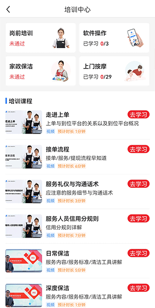 4、将软件中所有岗前培训课程学习完毕后就可以去正常接单了