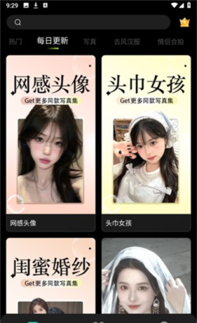 1、打开软件,直接进入写真页面,里面会给你提供丰富并且热门的写真信息。