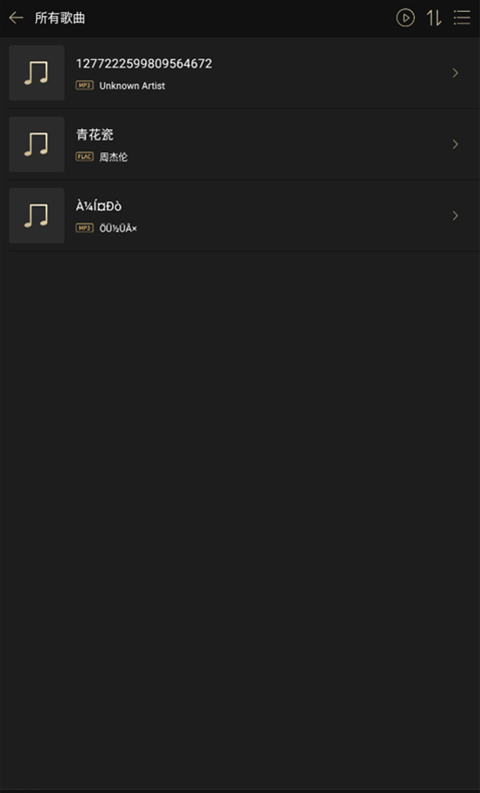 2、扫描完成的音乐资源即可在所有歌曲中,这样我们就可以点击相应的歌曲进行播放;