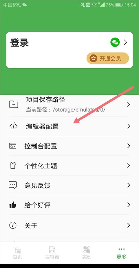 1、用户进入更多页面中点击【编辑器配置】