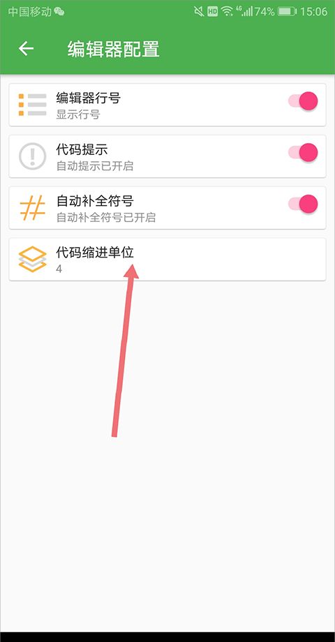 2、在打开的页面中点击【代码缩进单位】