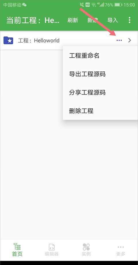 5、点击新建的项目文件夹右侧的类似三个小圆点的图标,在弹出的选项中可以点击【工程重命名】对项目进行重新命名,点击删除工程可将工程删除
