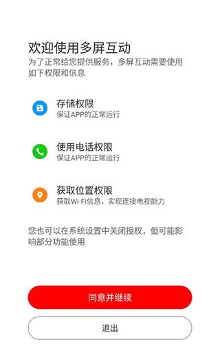 1、下载本站提供的多屏互动app,首次使用需要授予各种权限;