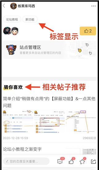 1、「标签」与「相关帖子」功能会以“猜你喜欢”的方式出现~