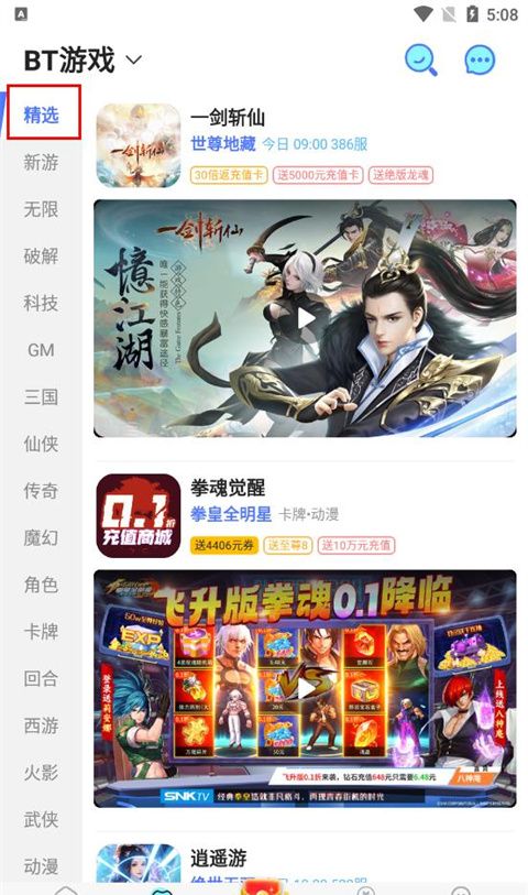 进入游戏的版块中,即可根据新游、破解、GM等分类进行选择