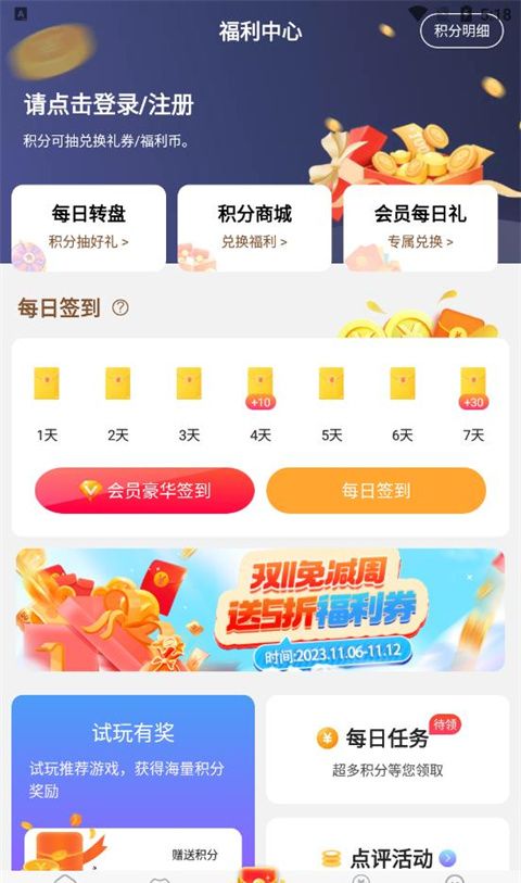 登录软件参与签到还能领取超多积分奖励,以及参与每日任务、点评活动哦
