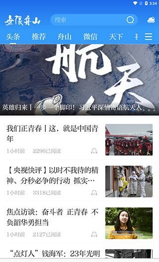 1、进入软件【首页】之后,我们就能看到一些新闻资讯内容,如头条、推荐、舟山、微信等。